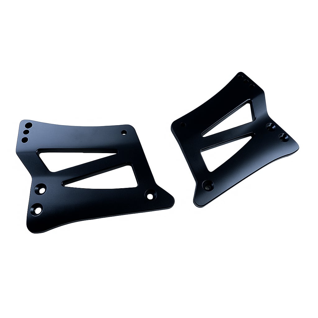 素材は5052アルミニウム合金で、削り出しの切削品です。また、ブラスト後に黒アルマイトの表面処理をおこなっており、塗装不要で耐腐食性に長けています。